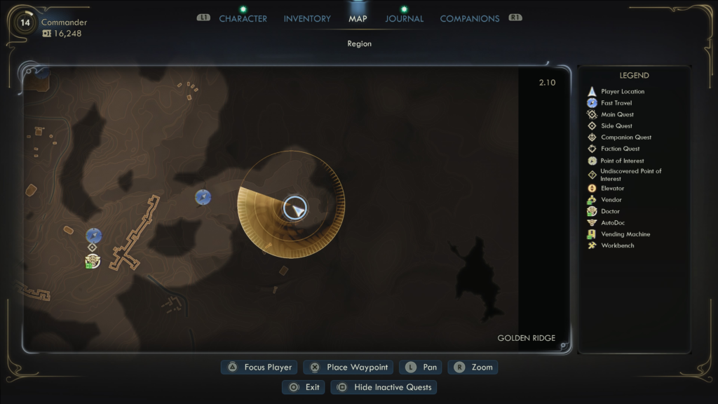 Head through the tram station on the western side of the Decommissioned Autonomous Extractorium, which is on the western side of Golden Ridge. Once on the tracks in the station, head south and follow the tracks, jumping over the broken sections.