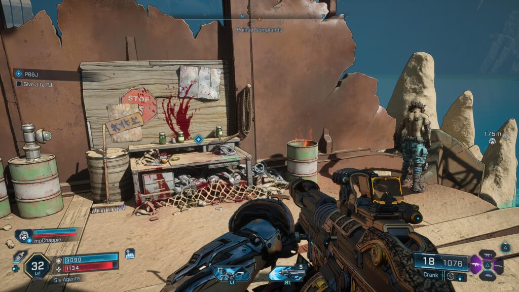 To begin the PB&J side mission in Borderlands 4, speak with PJ on the eastern edge of the Ruined Sumplands, just east of The Marrow Narrows. He’ll be waving to you near his house, which is located next to the water on the shore.